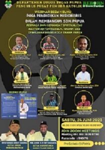 Buku itu kemudian didiskusikan melalui webinar oleh Departemen Gugus Tugas Papua, Pengurus Pusat Pemuda Katolik pada Sabtu, 2 Juni 2023 lalu, dengan menghadirkan enam penanggap buku, yaitu: Gabriel Asem, Prof. Dr. Drs. Ave Lefaan, Pastor Athanius Bame, OSA., Pastor Heribertus Lobya, OSA., Yustina Ogoney (Ketua Komda Papua Barat) dan Vincentius P. Baru (Ketua Komda Papua Barat Daya).