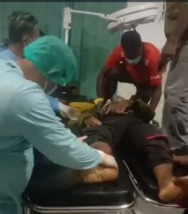 Ignasius Wareka dan Berta Aponop yang jadi korban kecelakaan maut di persimpangan Kampung Ogenetan Kilometer 62 diberi pertolongan oleh petugas medis Rumah Sakit Bergerak Cepat Mindiptana di Karawun-Kakuna, Selasa 15 Agustus 2023.