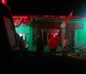 Kondisi Kantor Komando Rayon Militer Mindiptana Kabupaten Boven Digoel yang dirusak massa. Foto: suryapapua.com