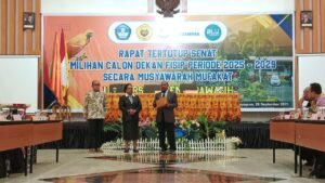 Sementara itu, Ketua Senat FISIP, Prof. Dr. Drs. Agustinus Fatem, MT dalam sambutannya menyatakan bahwa keputusan ini mengacu pada Peraturan Rektor Uncen Nomor 1 Tahun 2025 tentang tata cara pemilihan, pengangkatan, dan pemberhentian pimpinan fakultas. “Proses ini telah sesuai ketentuan, karena dari dua pendaftar, hanya satu yang memenuhi syarat, sehingga senat memutuskan dan melanjutkan ke tahapan selanjutnya,” ujarnya.