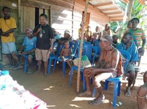 DPC Partai Gerindra Boven Digoel saat kampanye Pemilu 2024 di Kampung Yerop, Distrik Arimop, Kabupaten Boven Digoel. DPC Partai Gerakan Indonesia Raya Boven Digoel adalah satu-satunya partai politik peserta Pemilu 2024 yang mengusung 25 orang asli Papua masuk calon anggota DPR, agar hanya orang asli Papua yang masuk di DPRD Kabupaten Boven Digoel dan DPRD Provinsi Papua Selatan. Foto Paskalis Keagop/suaraperempuanpapua.com