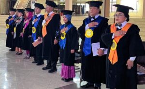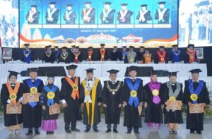 Prof. Dr. Janviter Manalu, M.Si dikukuhkan sebagai Guru Besar Bidang Teknik Sipil pada Fakultas Teknik dengan orasi ilmiahnya berjudul “Pemodelan Sistem Dinamik: Suatu Skenario Pengendalian Pencemaran Lingkungan.; Prof. Dr. Suriani Surbakti, M.Si Guru Besar bidang Biologi Fakultas Matematika dan Ilmu Pengetahuan Alam (FMIPA) dengan orasi ilmiah berjudul: “Dari Pesisir Hingga Pegunungan Papua: Ekologi dan Biodiversitas sebagai Fondasi Manajemen Sumber Daya Alam Berkelanjutan.”; Prof. Dr. Drs. Akhmad, M.Si Guru Besar Bidang Antropologi Sosial Fakultas Ilmu Sosial dan Ilmu Politik (FISIP), dengan orasi ilmiah berjudul: “Papua Bukan Tanah Kosong: Ekologi, Budaya, dan Perlawanan dalam Bayang-Bayang Kapitalisme Global”; Prof. Dr. Suharno, S.Si., M.Si Guru Besar Bidang Biologi Fakultas Matematika dan Ilmu Pengatahuan Alam (FMIPA), dengan orasi ilmiah berjudul: “Sinergi antara Tumbuhan dan Fungsi Mikoriza Arbuskula dalam Membangun Kesehatan Lingkungan”; Prof. Dr. Hasmi, S.K.M., M.Kes Guru Besar Bidang Kesehatan Masyarakat Fakultas Kesehatan Masyarakat (FKM) dengan orasi ilmiah berjudul: “Pendekatan Epidemiologi sebagai Pilar Pencegahan dan Pengendalian Penyakit Menular di Papua.” Prof. Dr. Westim Ratang, S.E., M.Si Guru Besar Bidang Manajemen Fakultas Ekonomi dan Bisnis (FEB) dengan orasi ilmiah berjudul: “Sinergitas Orientasi Pasar, Kewirausahaan, Budaya Kearifan Lokal, dan Pemberdayaan UMKM Papua yang Berdaya Saing; Prof. Dr. Drs. Daniel Lantang, M.Si Guru Besar Bidang Biologi Fakultas Matematika dan Ilmu Pengetahuan Alam (FMIPA) dengan orasi ilmiah berjudul: “Potensi Basilustingensis sebagai Agen Biokontrol terhadap Vektor Penyakit Menular dan Hama pada Tanaman Pangan.